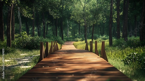 © yusmahendra0408, Obraz premium A Wooden Path Through the Forest