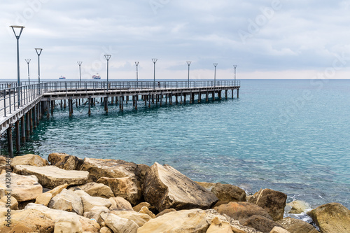 © Dimitrios, Obraz premium A wooden pier at he waterfront of Limassol