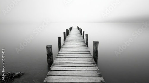 © Aphirak, Obraz premium A wooden pier stretching over a calm lake