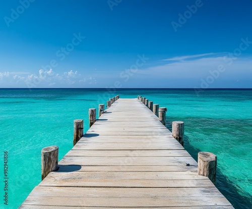 © TheosArtTavern, Obraz premium A wooden pier with a blue ocean in the background