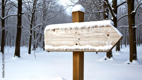 Naklejka premium A wooden sign blanketed in snow indicates a tranquil winter pathway, framed...