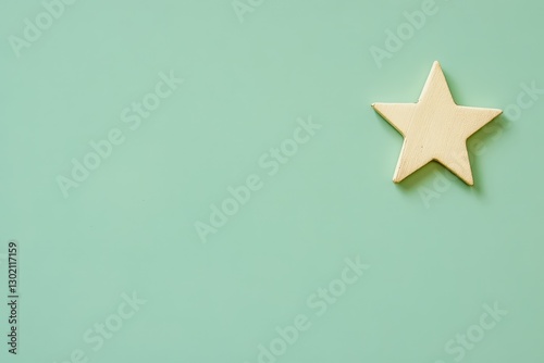 © MrHamster, Fototapeta premium A wooden star decorates a plain light green colored backdrop
