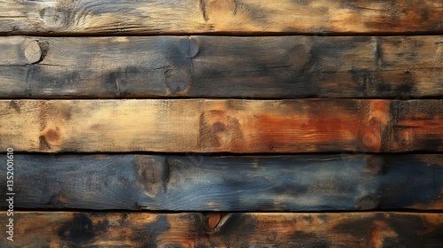 © Linus, Naklejka premium A wooden surface with a burnt and weathered appearance
