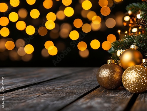 © VISUAL BACKGROUND, Fototapeta premium A wooden table with gold ornaments on top of it