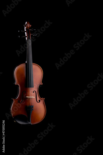 © Janisphoto, Naklejka premium A wooden violin or viola on a black background