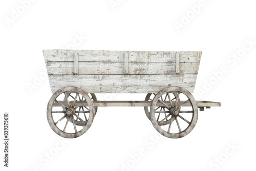 © peerasak, Fototapeta premium A wooden wagon with rusted wheels sits on a white background, 3d render, clipart, isolated on a transparent background.