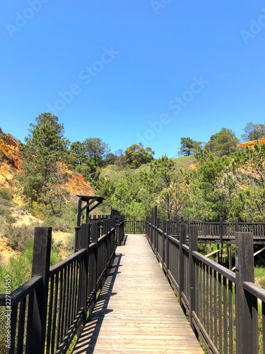 © djura stankovic, Fototapeta premium A wooden walkway to the beach in Algarve, Portugal