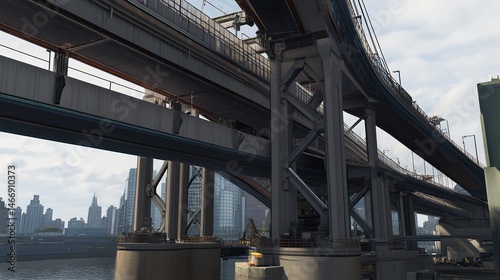 Obraz premium A work-in-progress double-deck bridge, its dual-level design supported by...