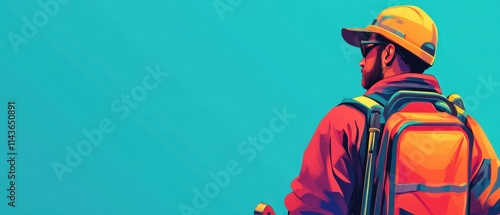 © MediaStockAI, Obraz premium A Worker Gazes Across a Vivid Blue Landscape