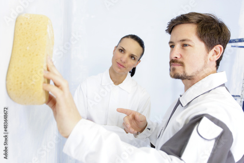 Obraz premium a worker is using a sponge