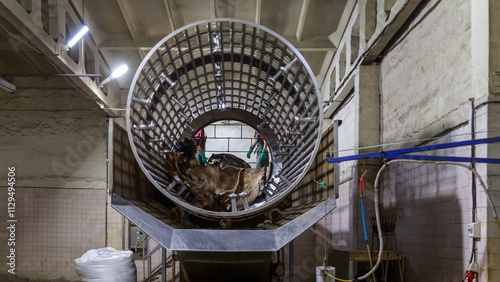 © Елена Бионышева-Абра, Obraz premium A workshop of a leather factory with special equipment.