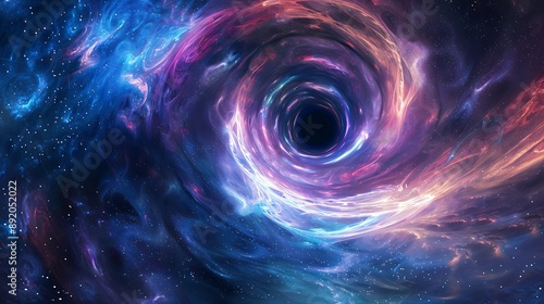 Obraz premium A wormhole opening in deep space, swirling with energy and distorting light