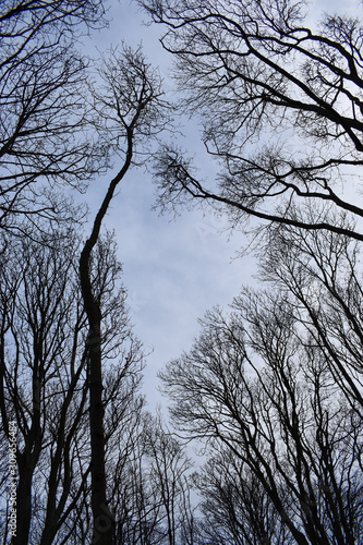 © Ben, Obraz premium A worms eye view of an Irish woodlands tree canopy
