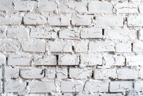 © Fotograf, Fototapeta premium A worn-out white brick wall with cracks and faded paint
