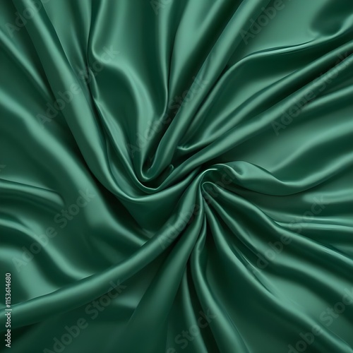 © Pod, Fototapeta premium A wrinkled, emerald green satin fabric against a white background