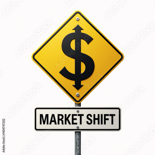 © Wool World, Obraz premium A yellow and black sign with a dollar sign on it. with text "market shift"