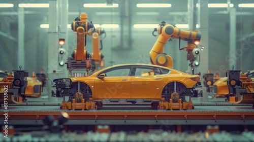 © AnuStudio, Fototapeta premium A yellow car is being built in a factory