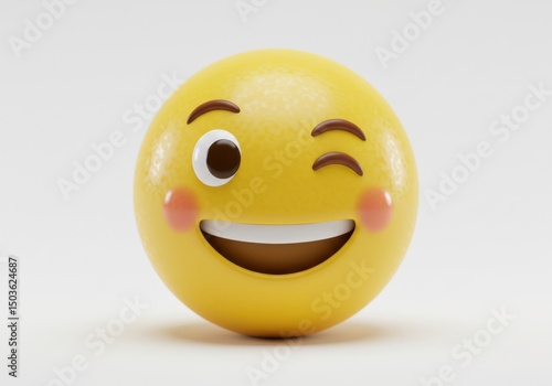 © MdMostafizur, Fototapeta premium A yellow emoji with one eye open and the other closed in a winking expression