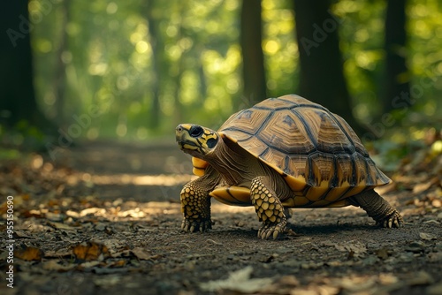 © talkative.studio, Obraz premium A Yellow-Footed Tortoise Walking Through A Forest