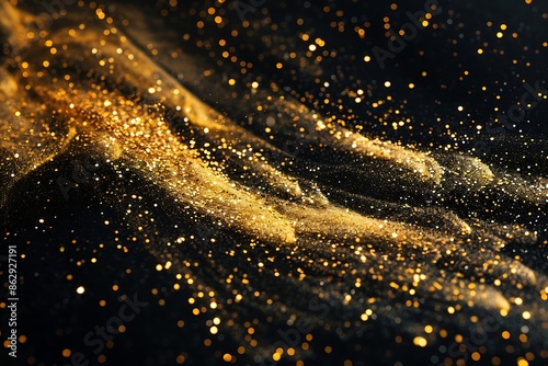 © Mahmud Creative, Naklejka premium A yellow powder explosion on a black background