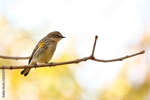 © Melody Mellinger, Fototapeta premium A Yellow Rumped Warbler perches in the woods on an autumn afternoon.