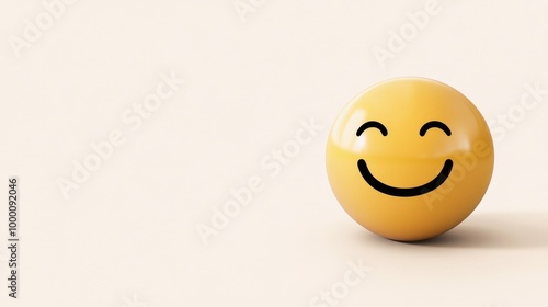 © Nathamanee, Fototapeta premium A yellow smiley face is sitting on a white background