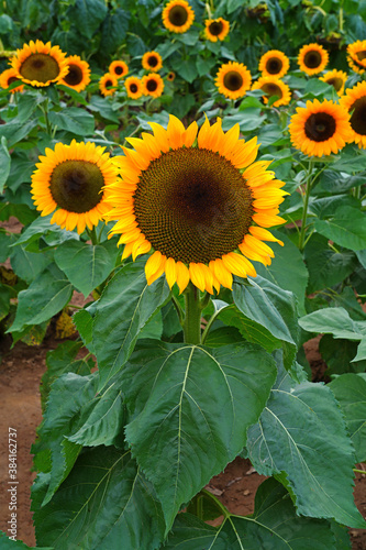 Obraz premium A yellow sunflower (helianthus) in summer