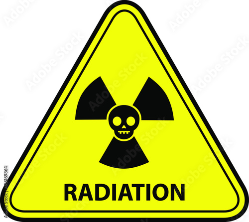 Fototapeta premium A yellow warning triangle sign: Radiation Hazard with Skull