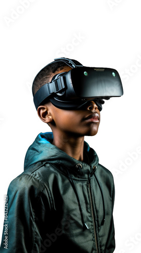 Fototapeta premium a young african american boy using a vr virtual reality headset isolated on a...