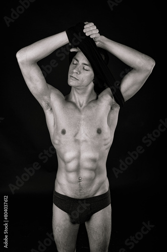 Naklejka premium A young attractive man with a beautiful body posing in the studio.