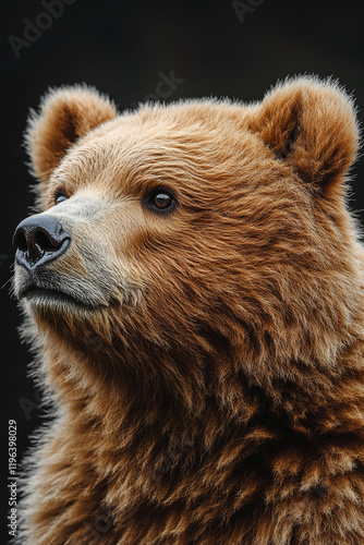 Fototapeta premium A Young Brown Bear Gazes Pensively Upwards