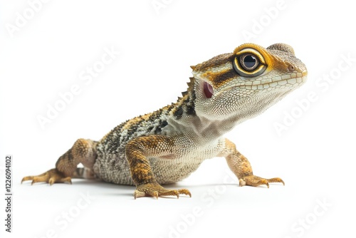 © Zahra, Fototapeta premium A young, curious lizard poses against a white background.