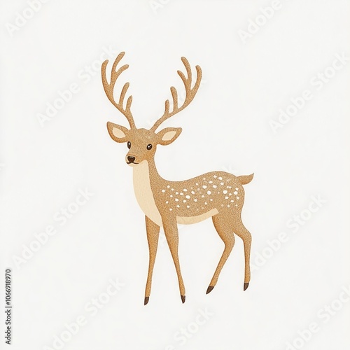 Fototapeta premium A young deer with antlers standing gracefully against a plain background,...