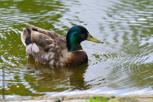 Fototapeta premium A young duck swims on the lake.
