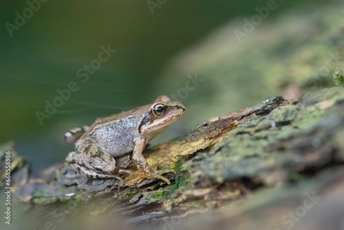 Fototapeta premium A young european common brown frog (Rana temporaria). art photography of an...