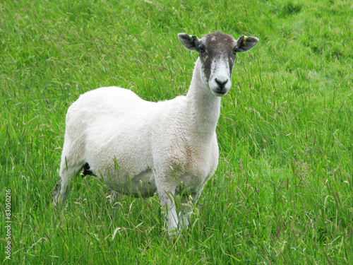 © panmaule, Naklejka premium A young ewe sheep grazing in a meadow