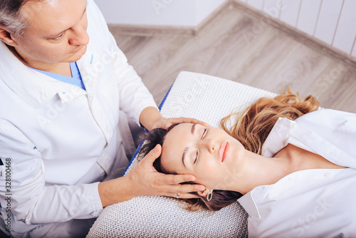 Obraz premium A young girl at the doctor of osteopath , to treat curvature of the spine.