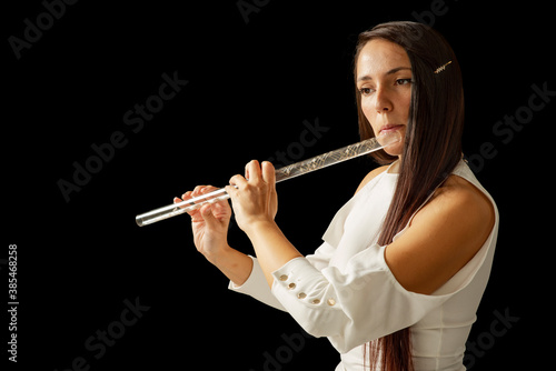 © Andrea Tosi, Fototapeta premium A young girl plays a crystal flute