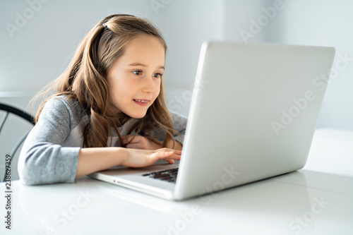 © Louis-Paul Photo, Naklejka premium A Young girl using laptop at home