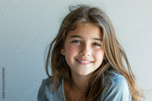 Fototapeta premium A young girl with long hair is smiling for the camera