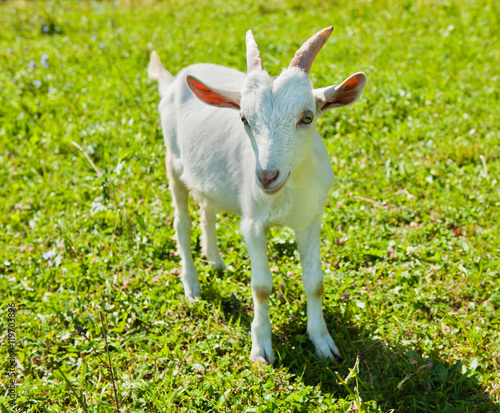 Obraz premium A young goat grazing in a meadow