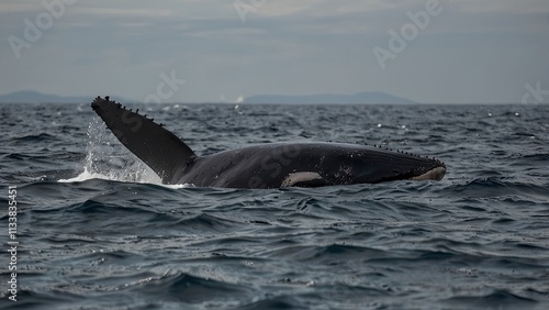 © MohammadImran, Fototapeta premium A young humpback whale slowly surfaced to air.