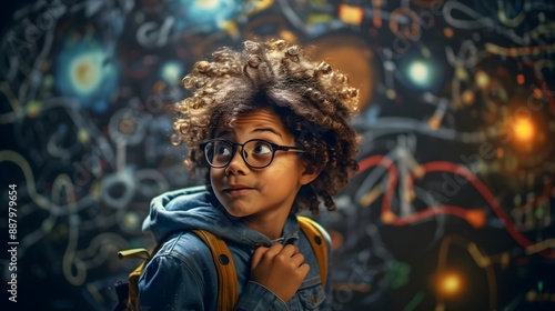 Obraz premium A young learner expressing creativity on a blackboard, turning ideas into...