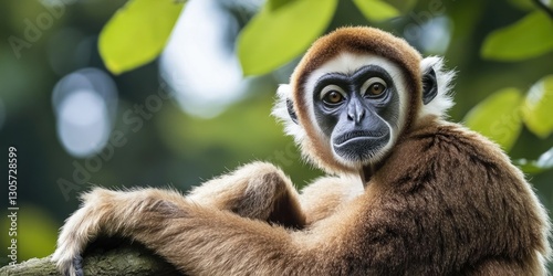 © Alexander Chaykin, Obraz premium A young macaque sitting on a tree limb.