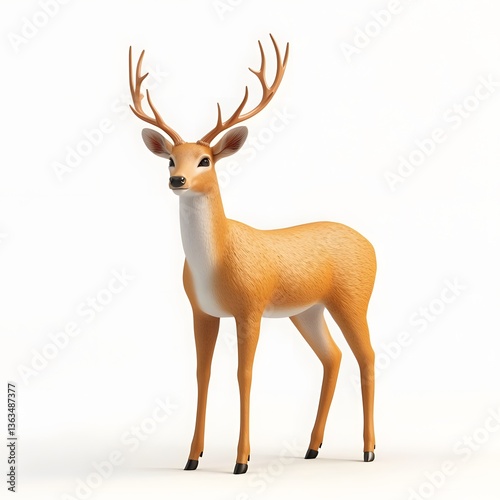 © CleanFrame, Fototapeta premium A Young Male Deer with Antlers Stands Gracefully Isolated on White Background