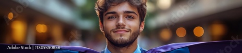 Obraz premium A young male graduate poses with a confident expression ready for the...