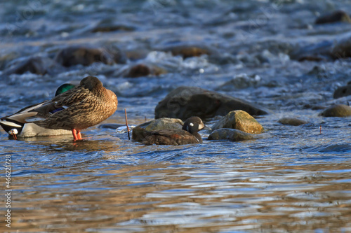 © Paul Roedding, Fototapeta premium A young male harlequin duck in a fast-moving river