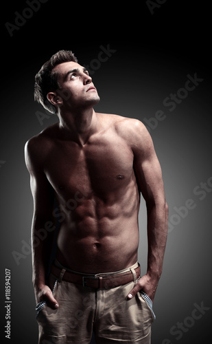 © ASDF, Fototapeta premium a young male model posing his muscles