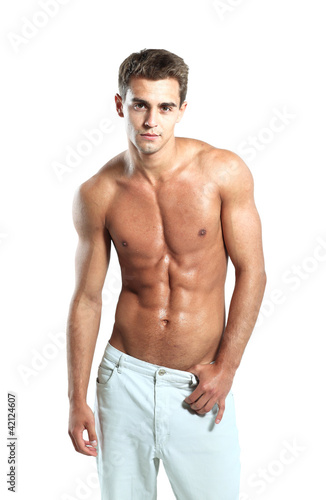 © ASDF, Fototapeta premium a young male model posing his muscles