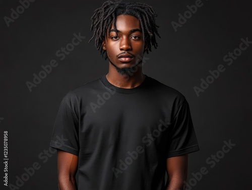 © darion, Naklejka premium A young man with dreadlocks poses confidently against a dark background.